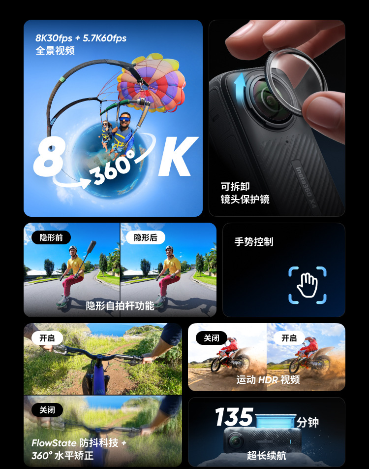 影石Insta360 X4 款K全景运动相机防抖防水户外拍摄骑行