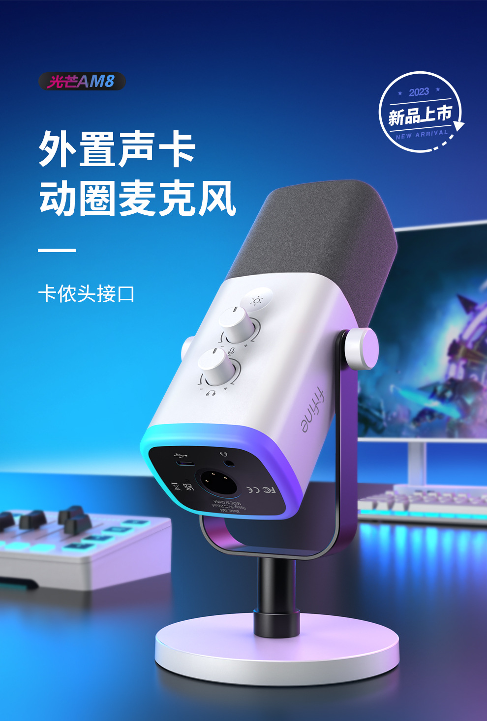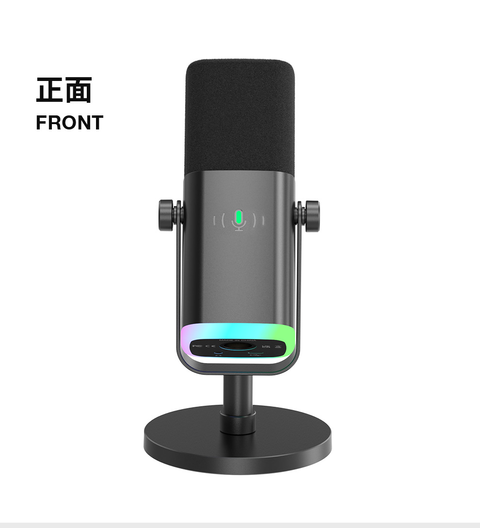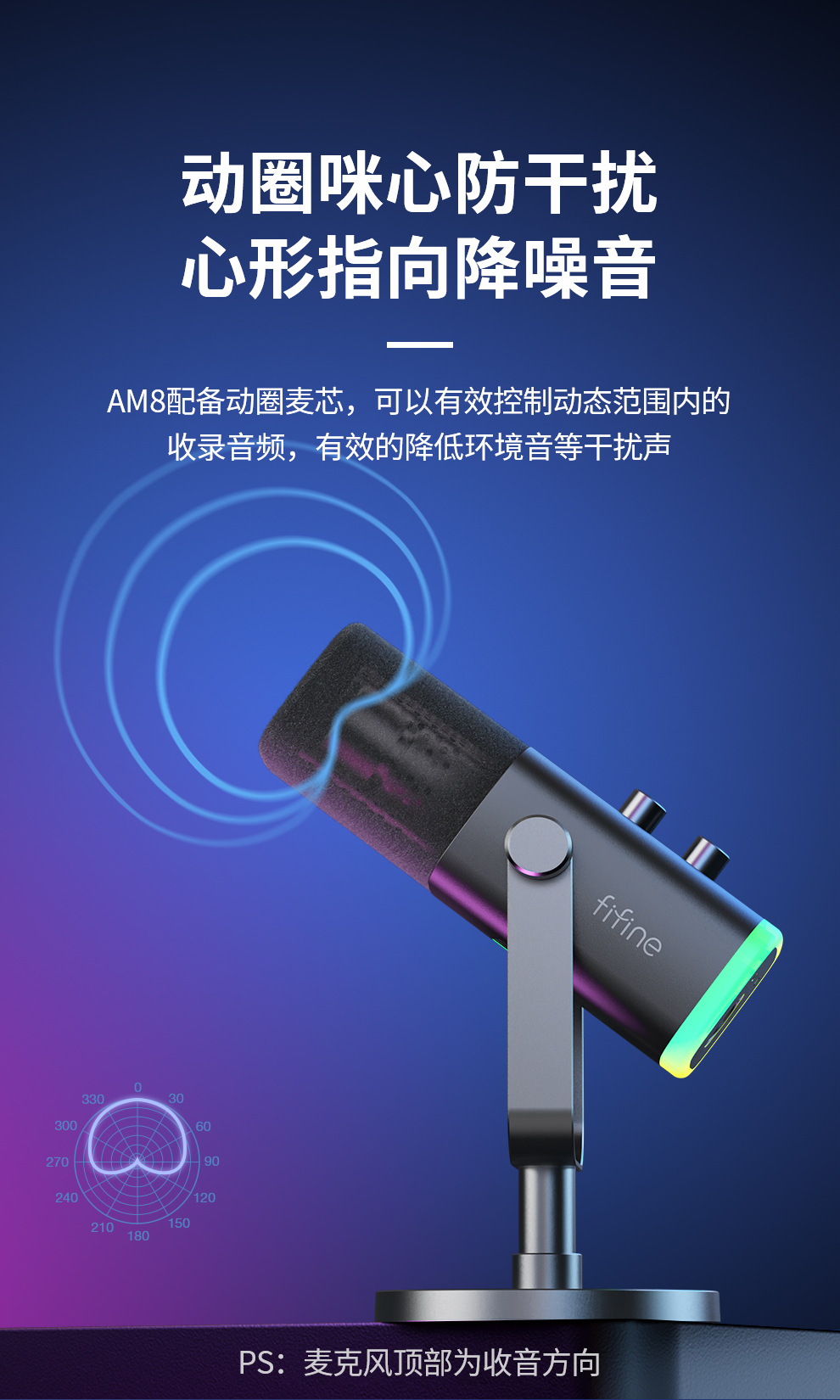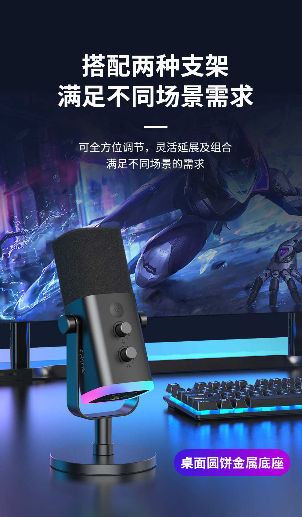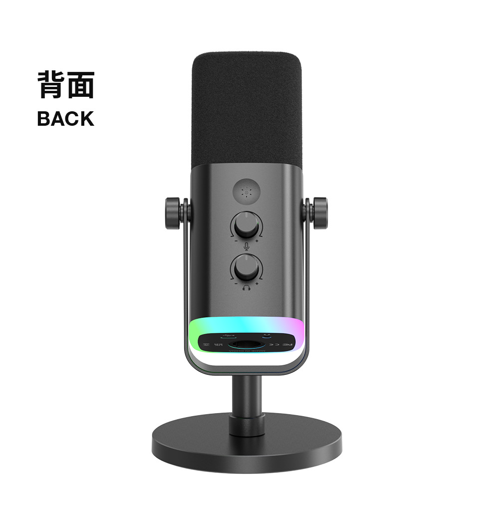 fifine动圈降噪多功能麦克风电脑台式游戏直播录音接声卡RGB麦AM