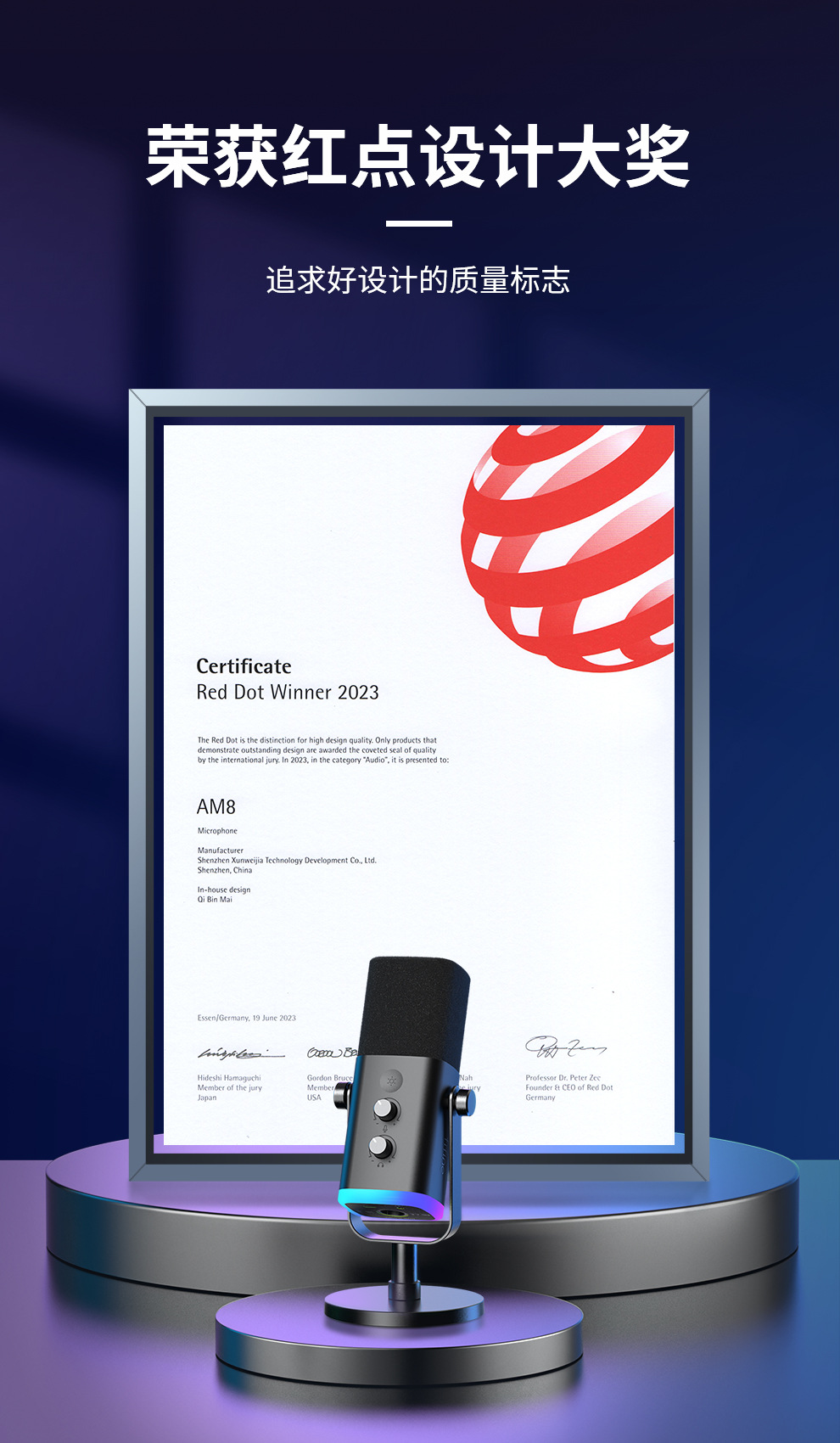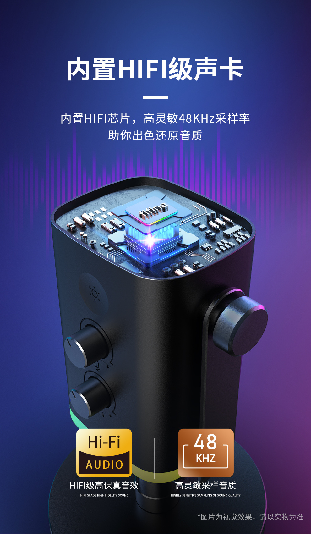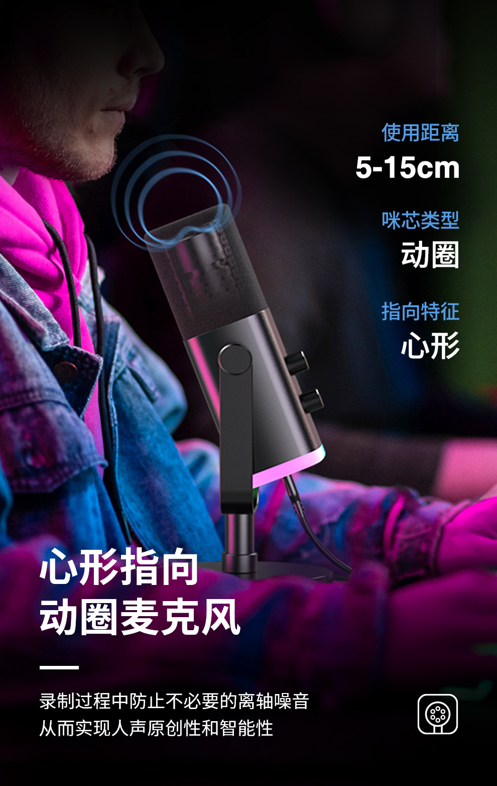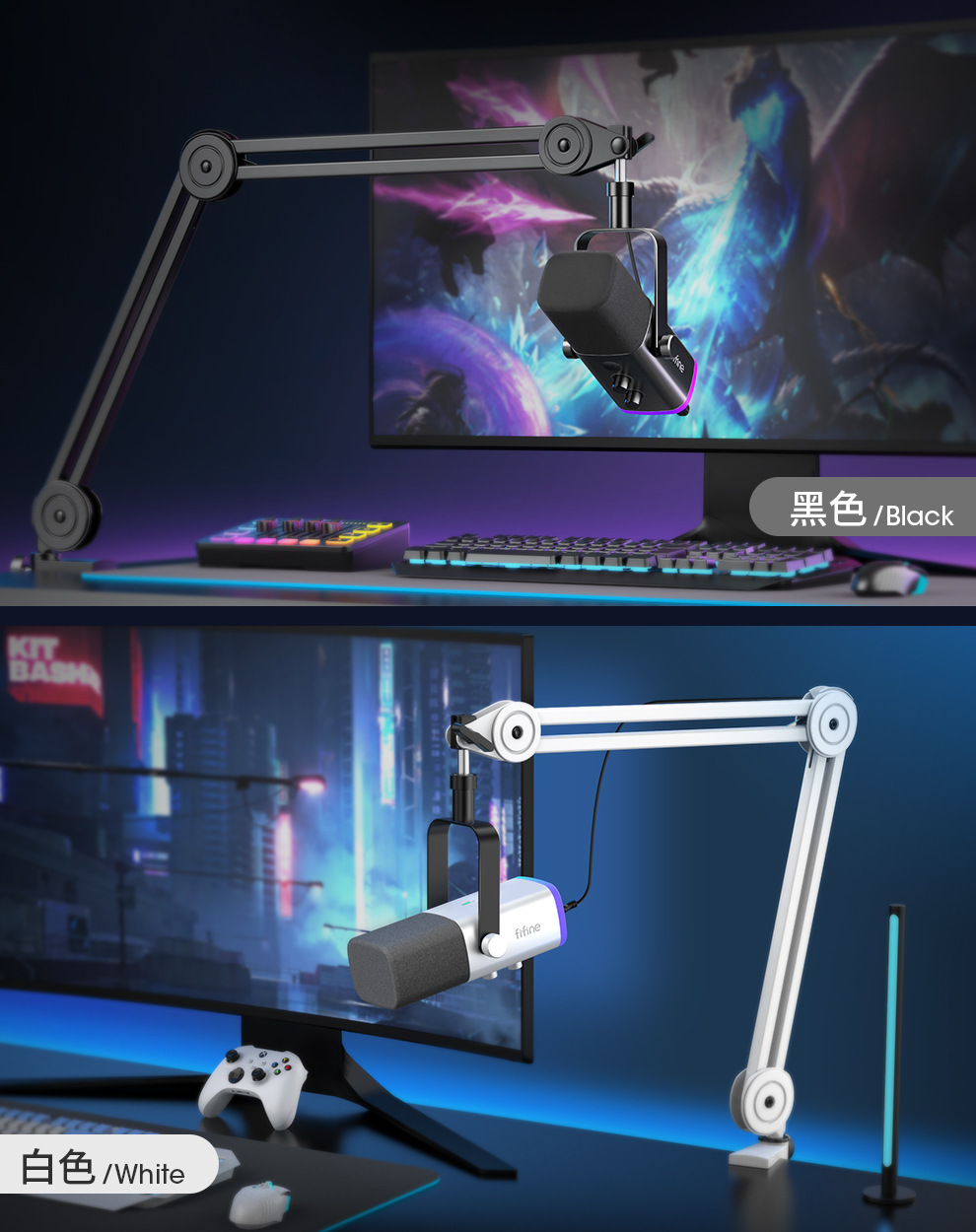 fifine动圈降噪多功能麦克风电脑台式游戏直播录音接声卡RGB麦AM