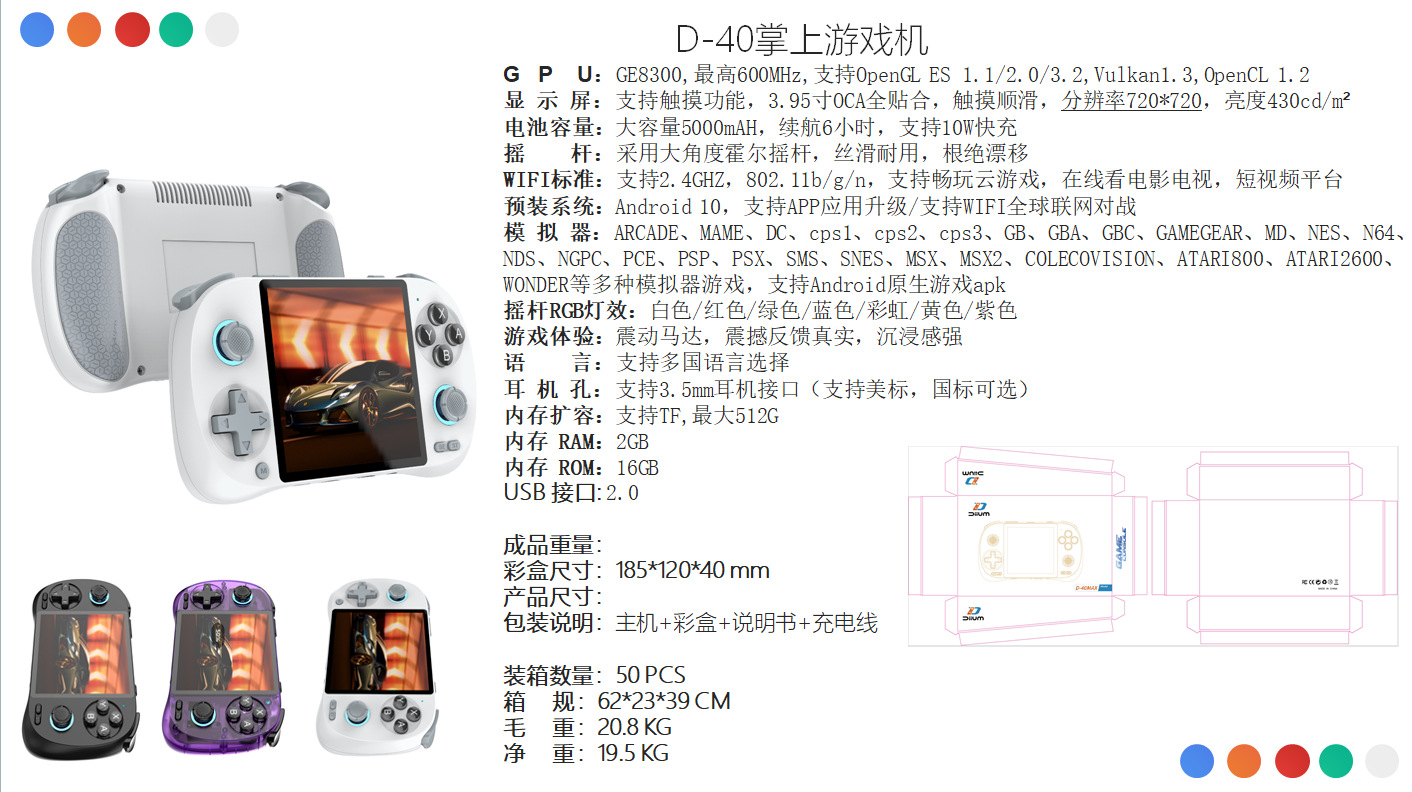 D40MAX游戏机4寸高清开源多点触屏无线WIFI联机安卓原生游戏