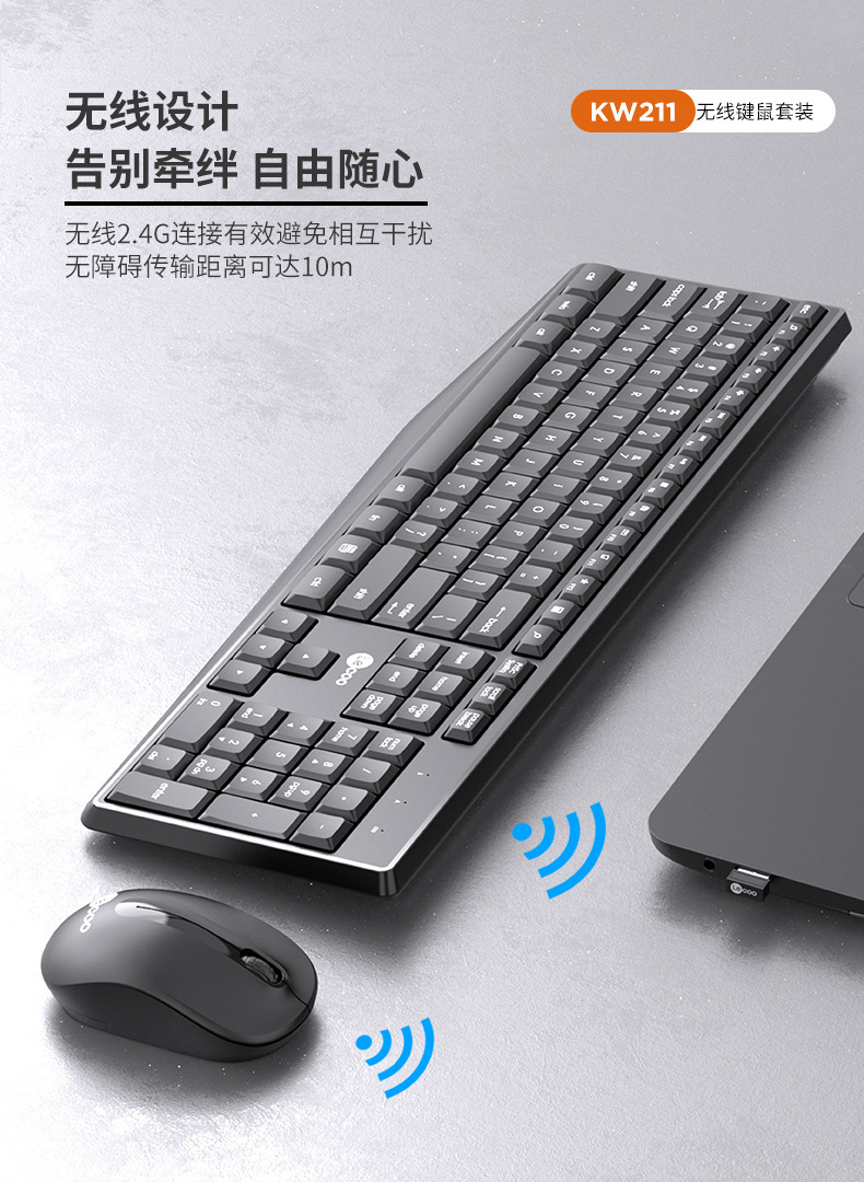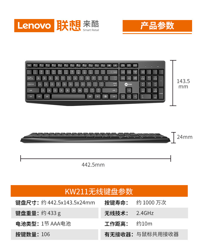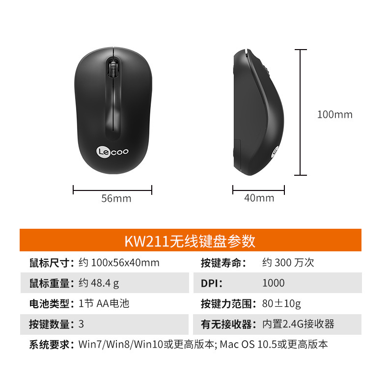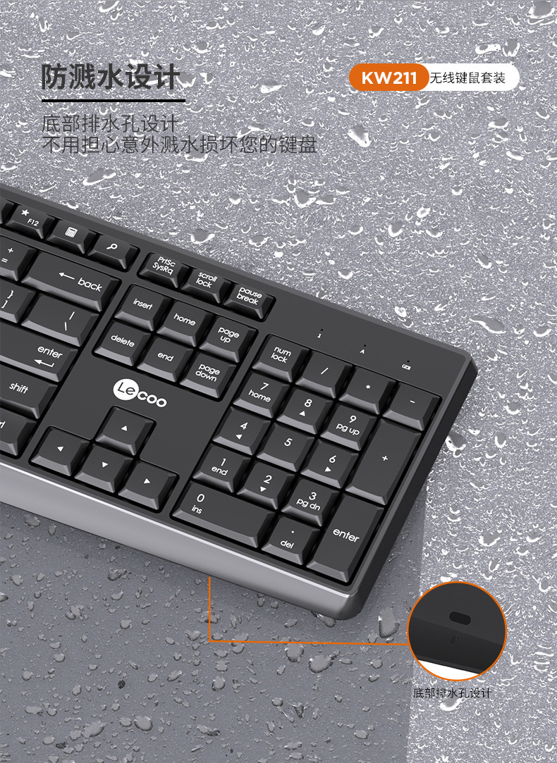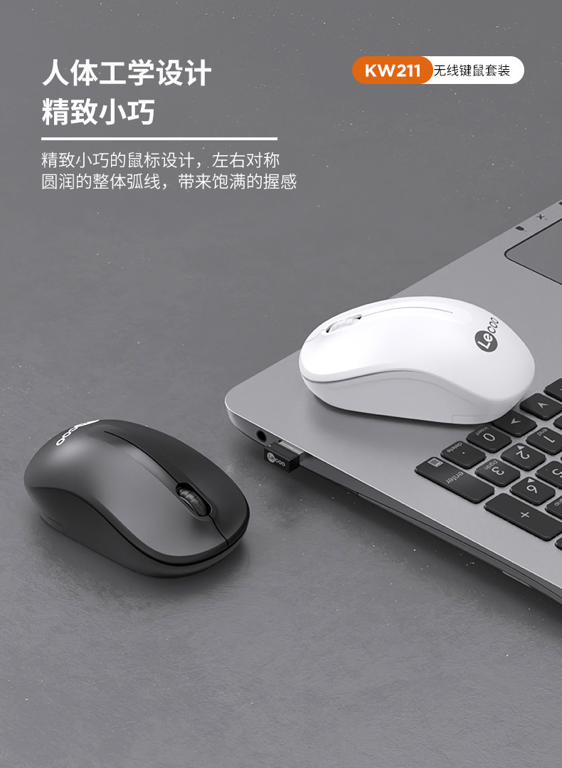 Lecoo来酷KW211无线2.4G黑白色无线套装电脑键盘鼠标家用办公键盘