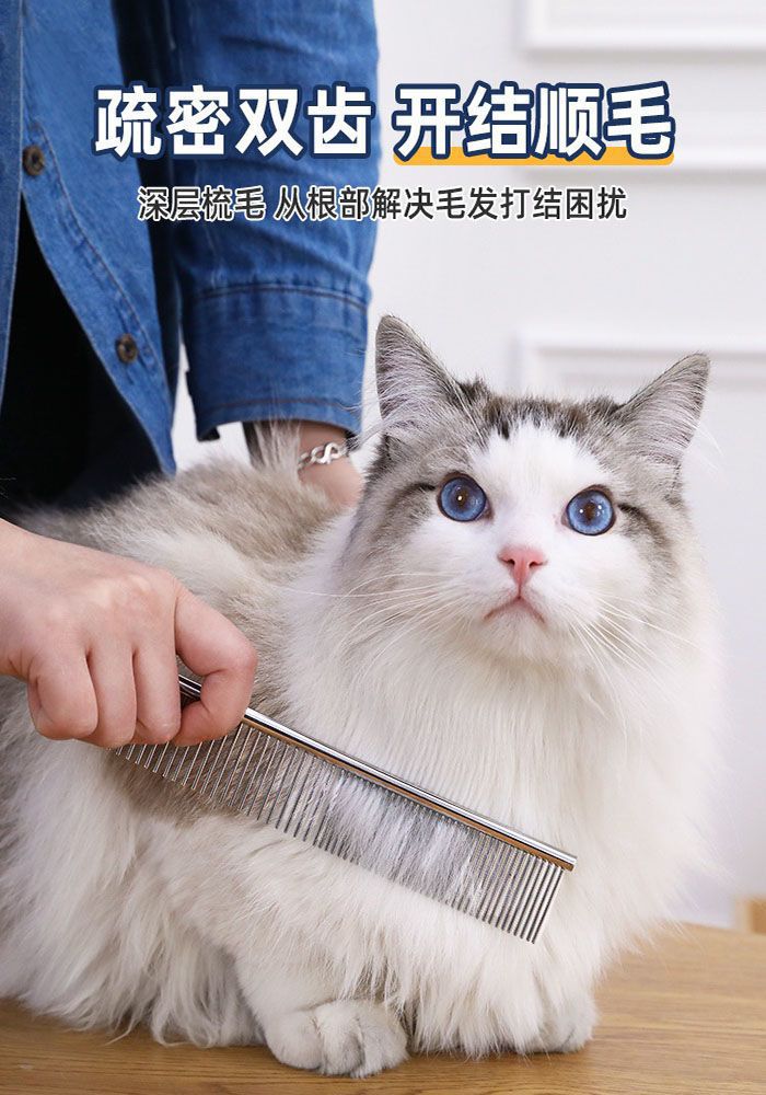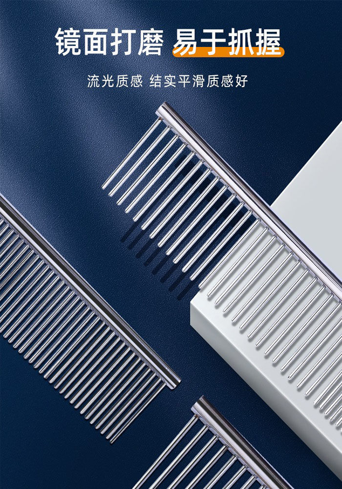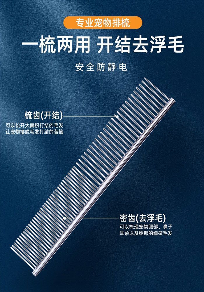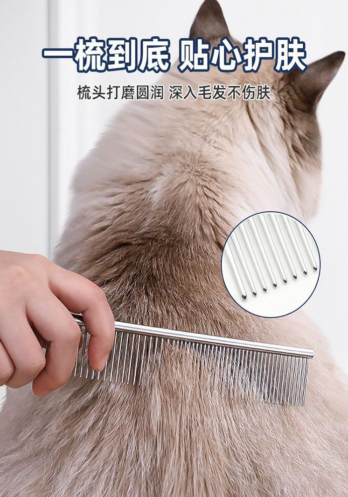 宠物排梳长毛猫梳毛专用梳子开结钢梳布偶猫咪狗狗面梳密齿直排梳