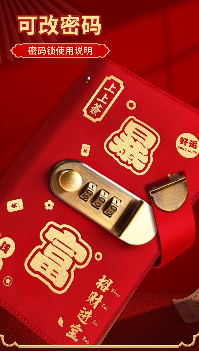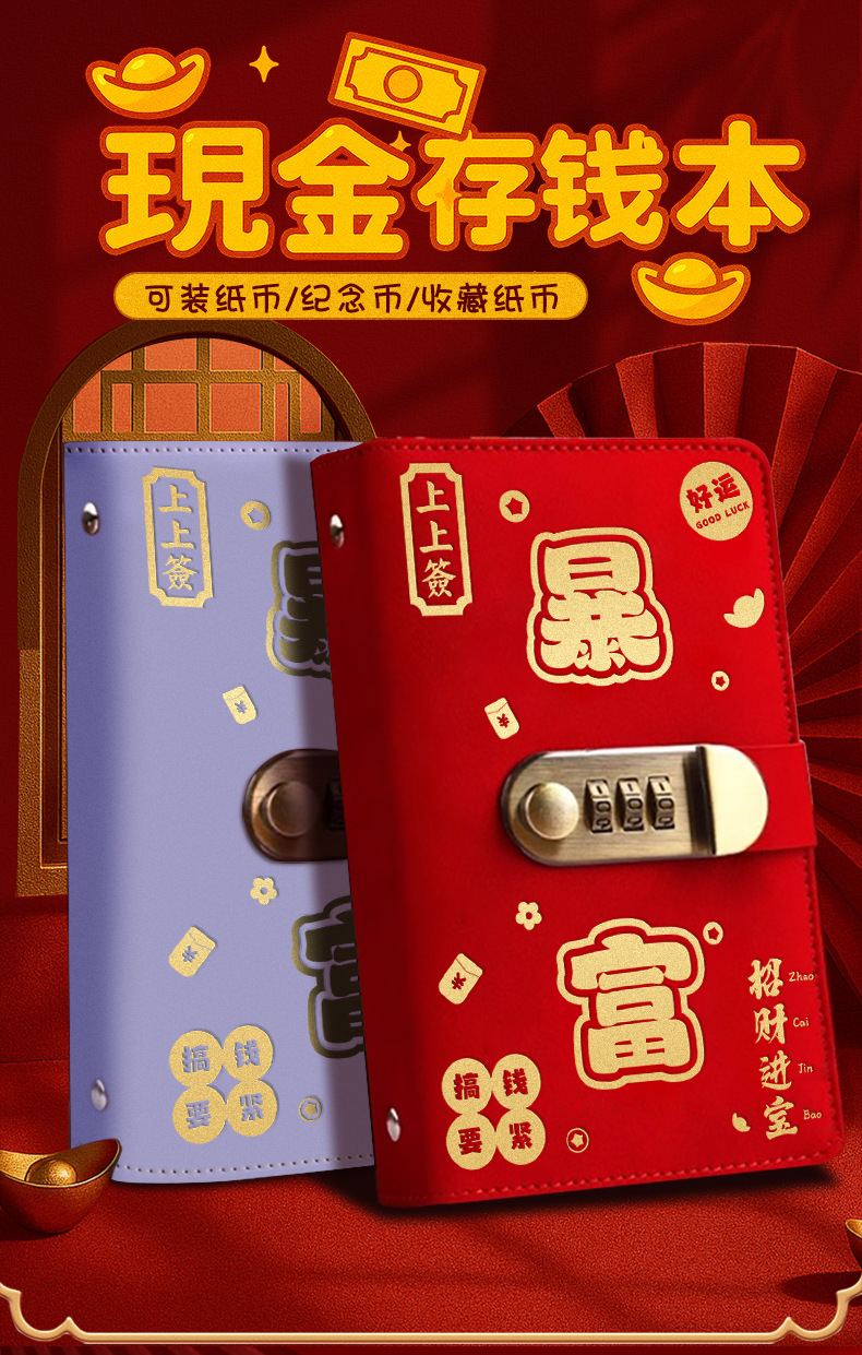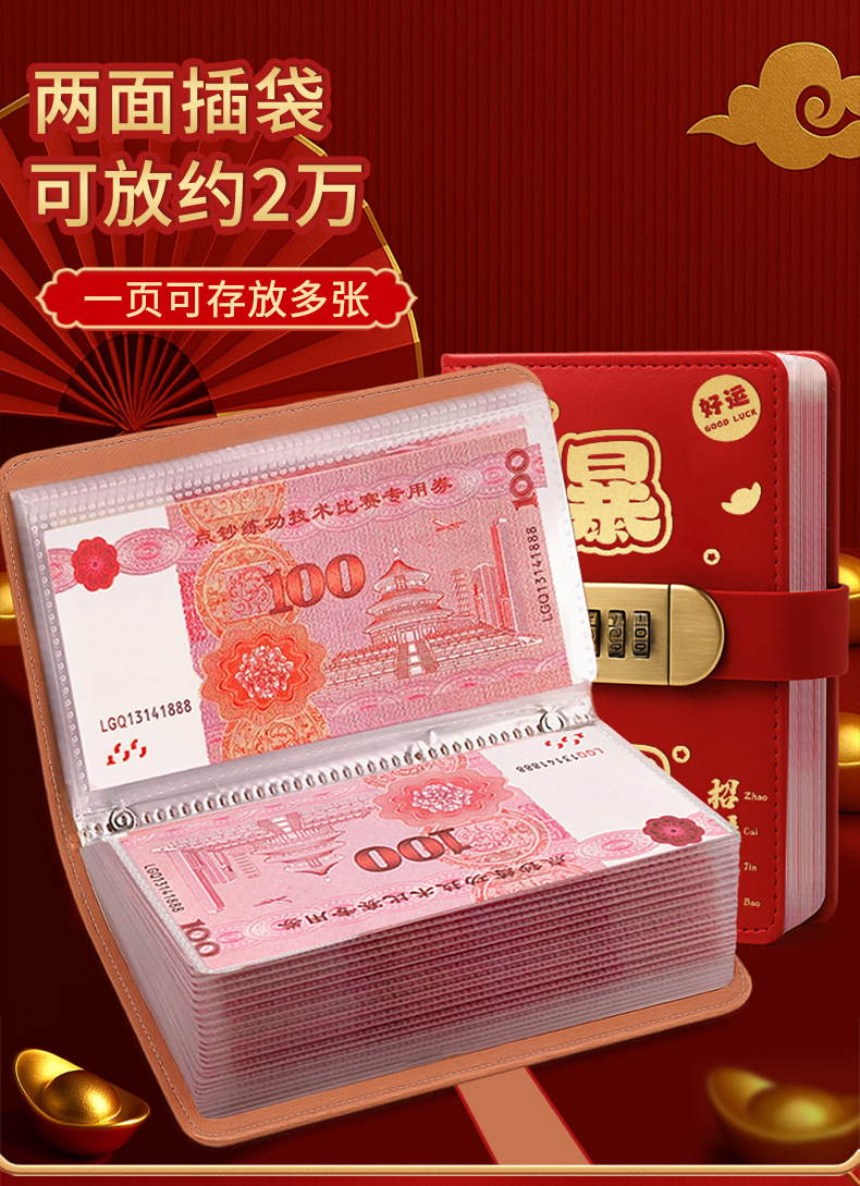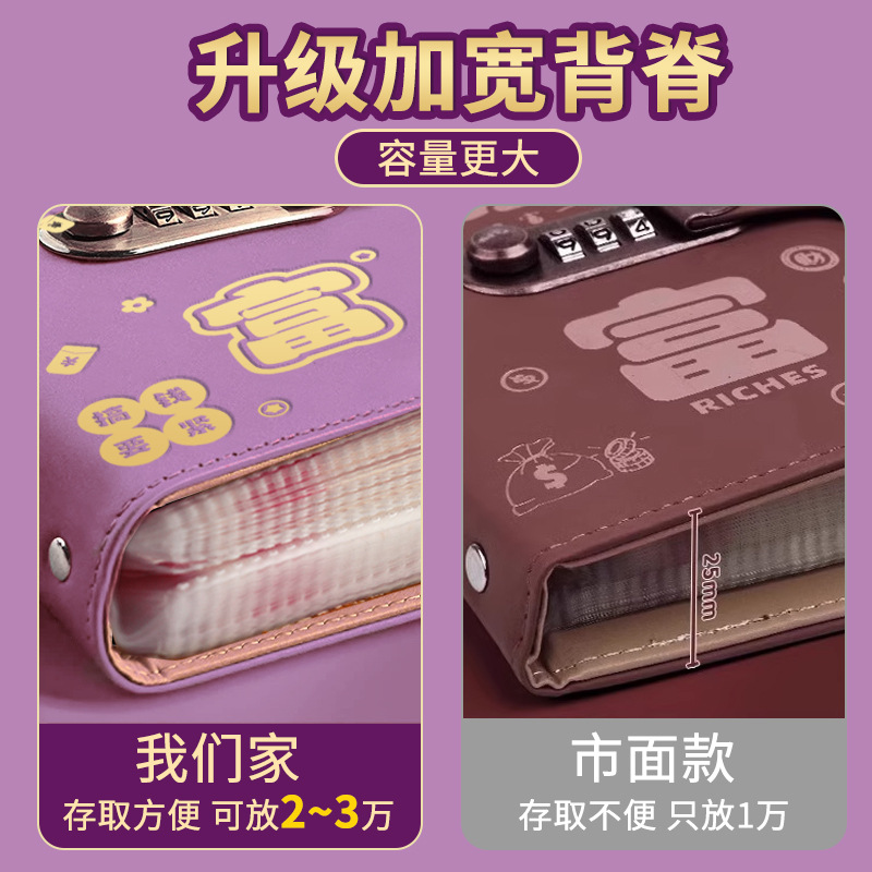 存钱夹钱册本现金存钱本暴富密码锁钱包可放现金大容量收纳册袋