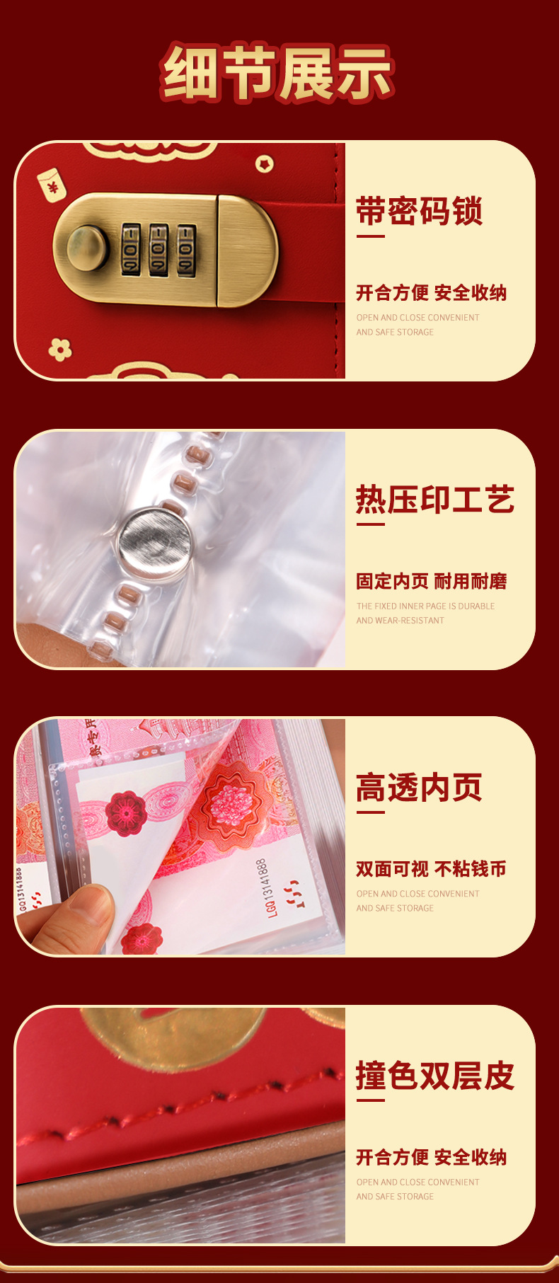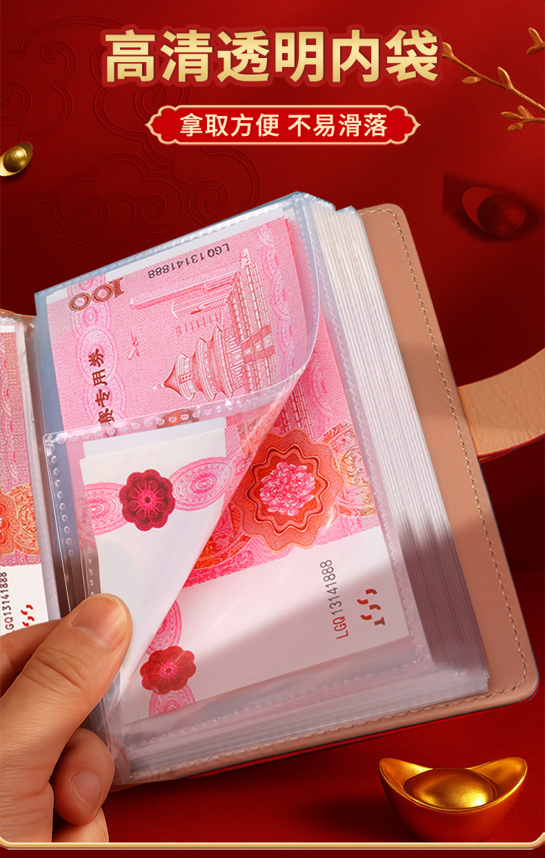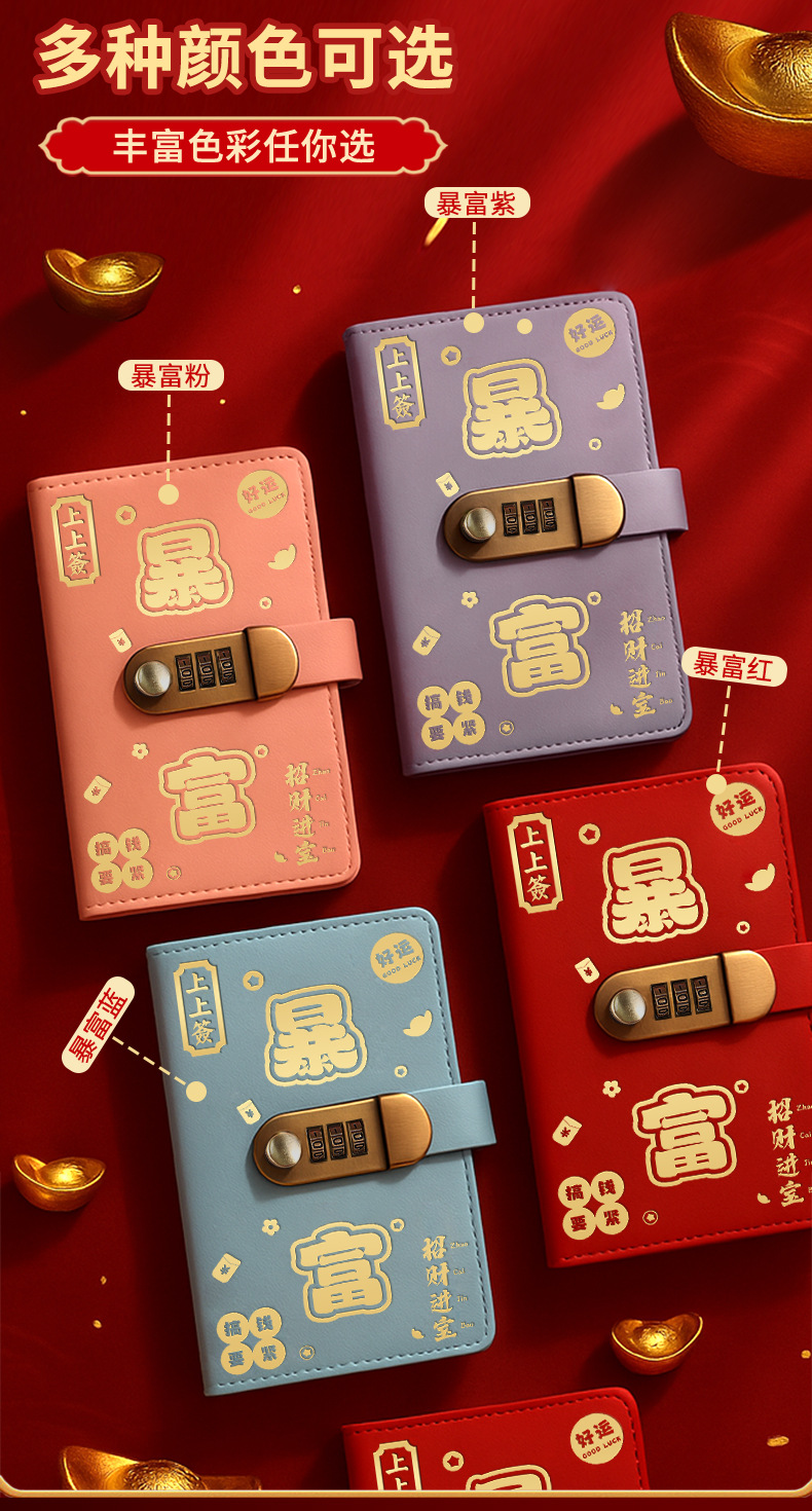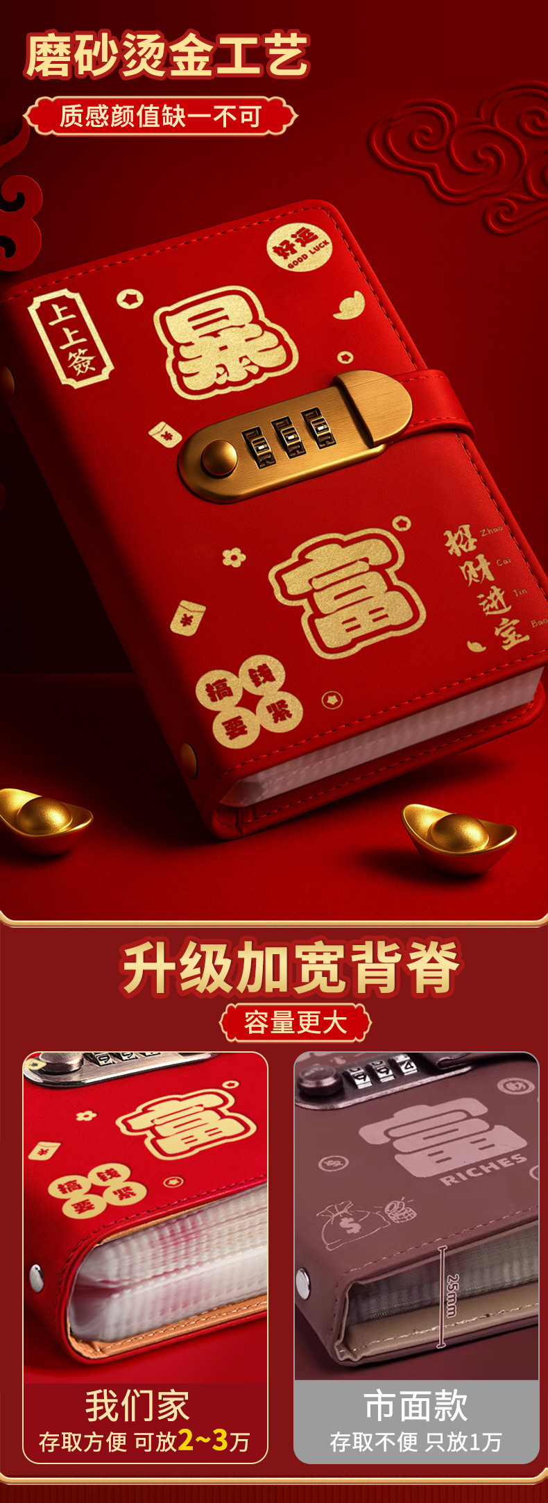 存钱夹钱册本现金存钱本暴富密码锁钱包可放现金大容量收纳册袋