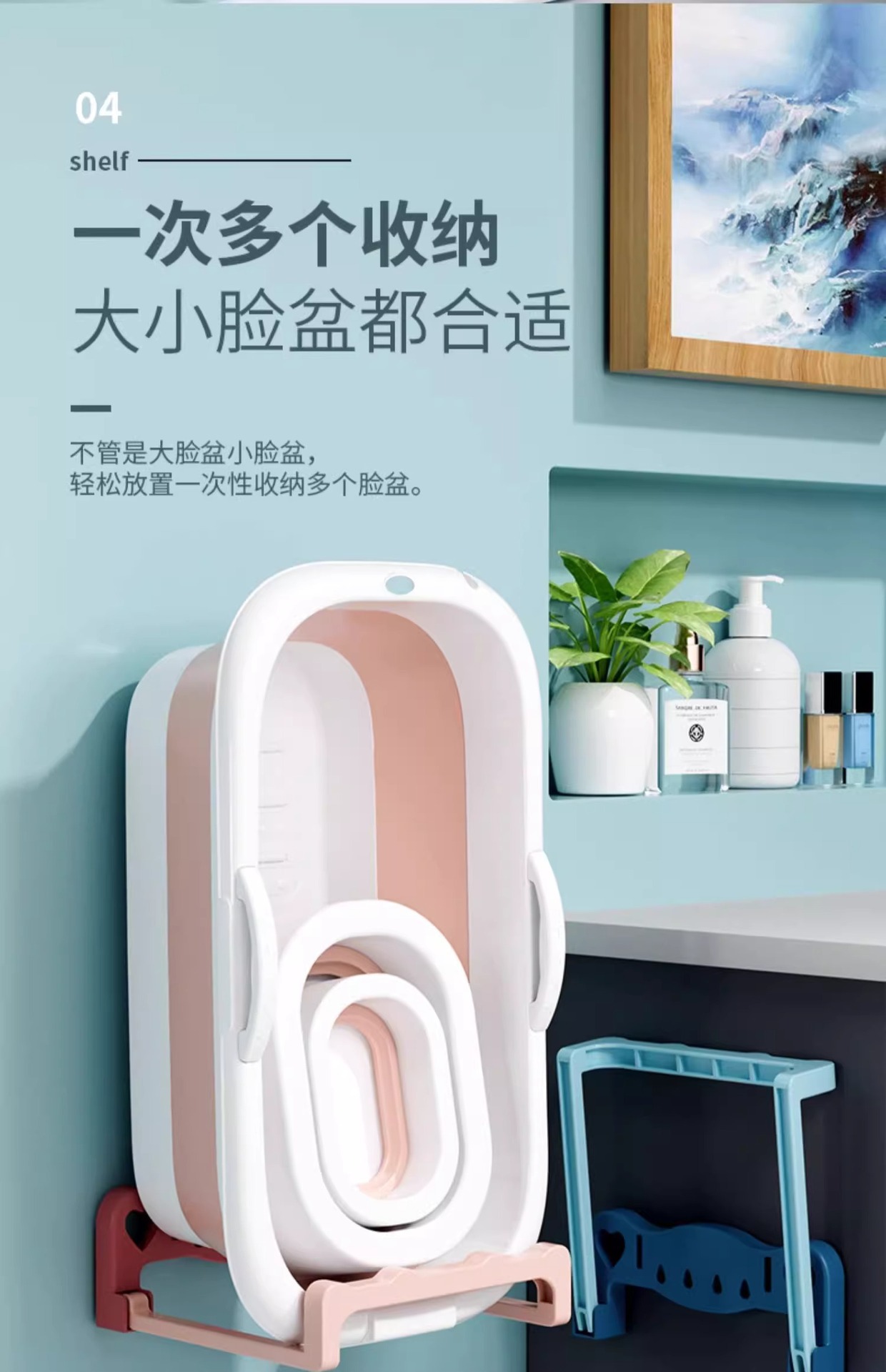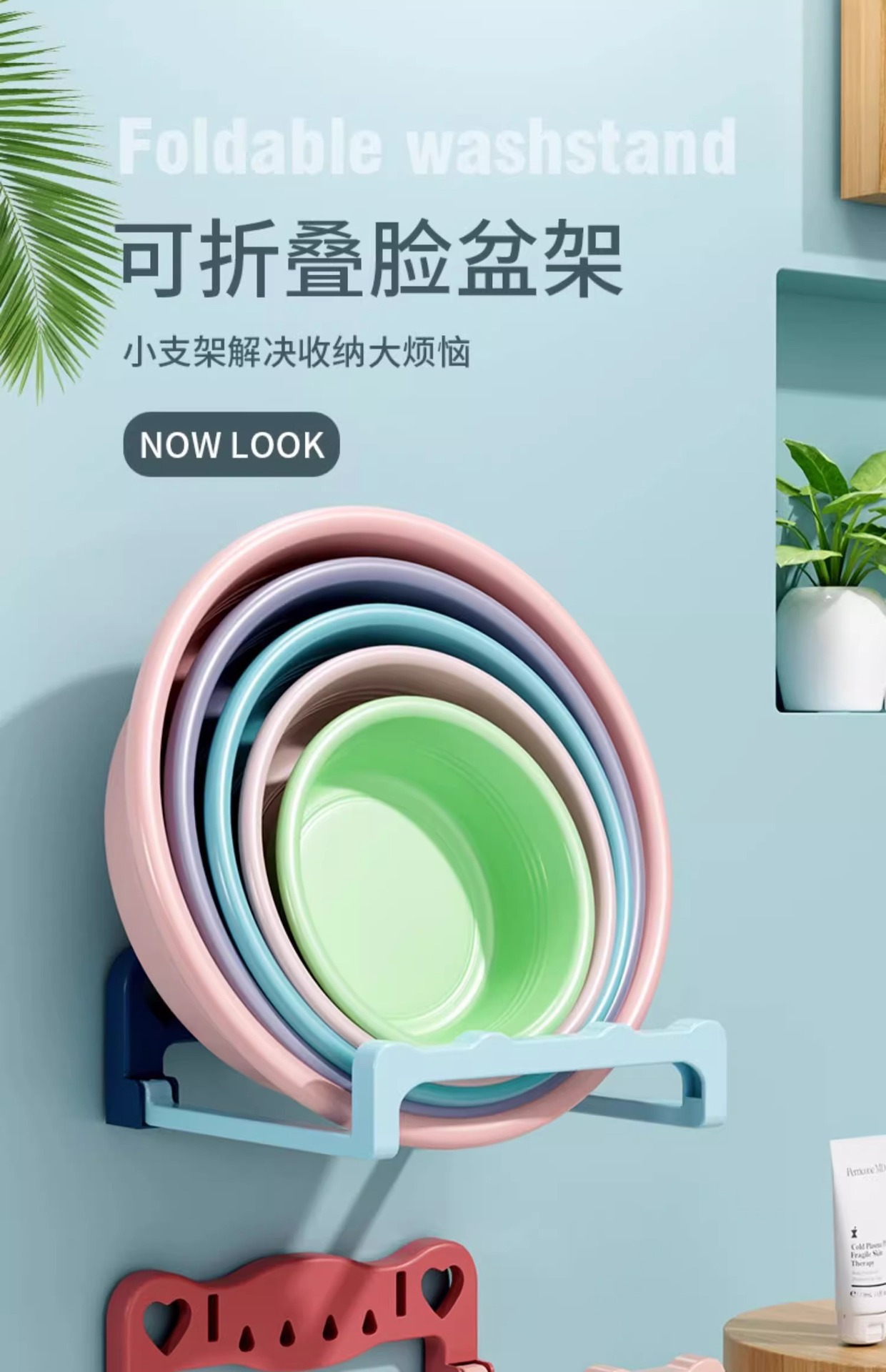 免打孔脸盆架卫生间可折叠盆架厕所盆子洗脸盆壁挂浴室脸盆置物架