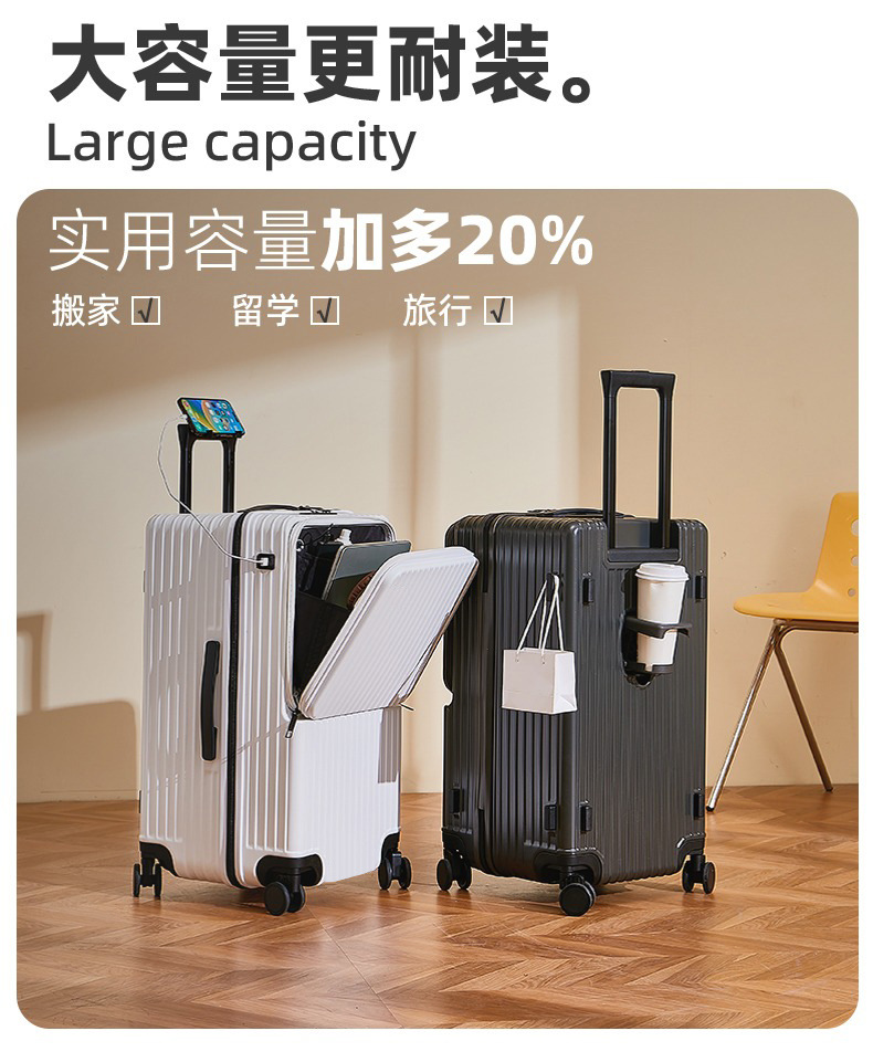 五轮行李箱前开口大容量30寸多功能密码箱结实耐用24寸旅行箱