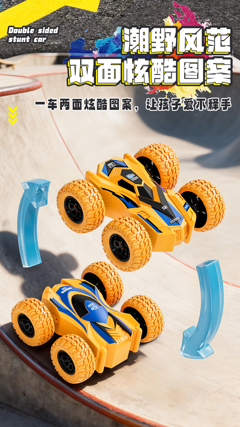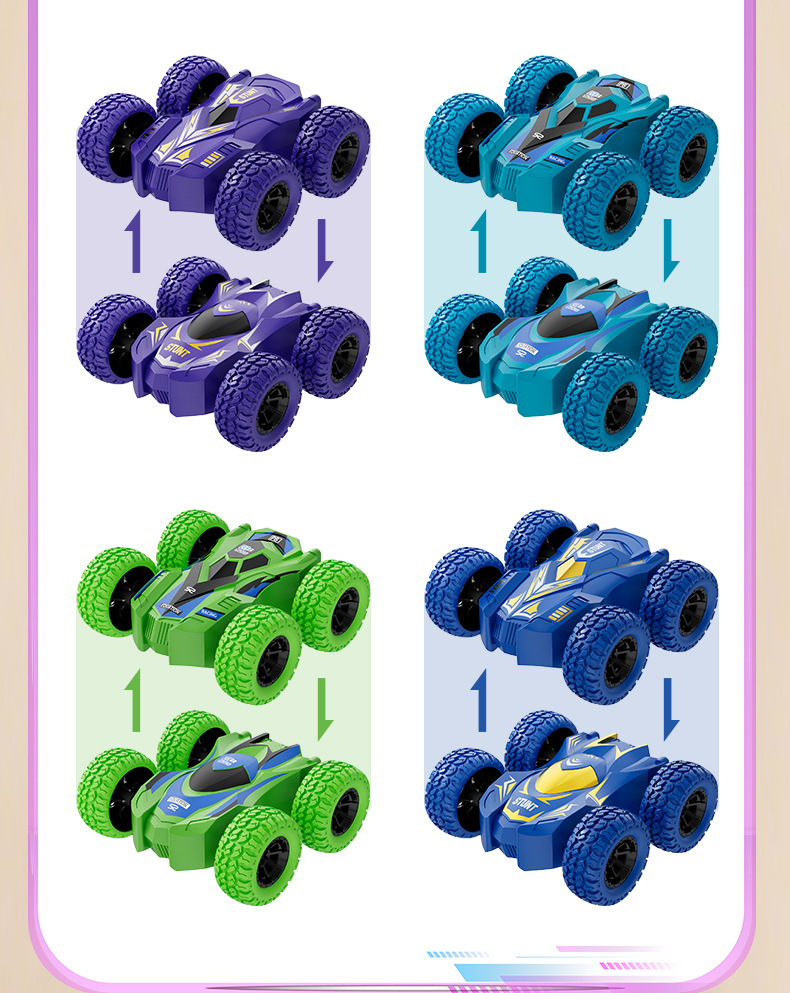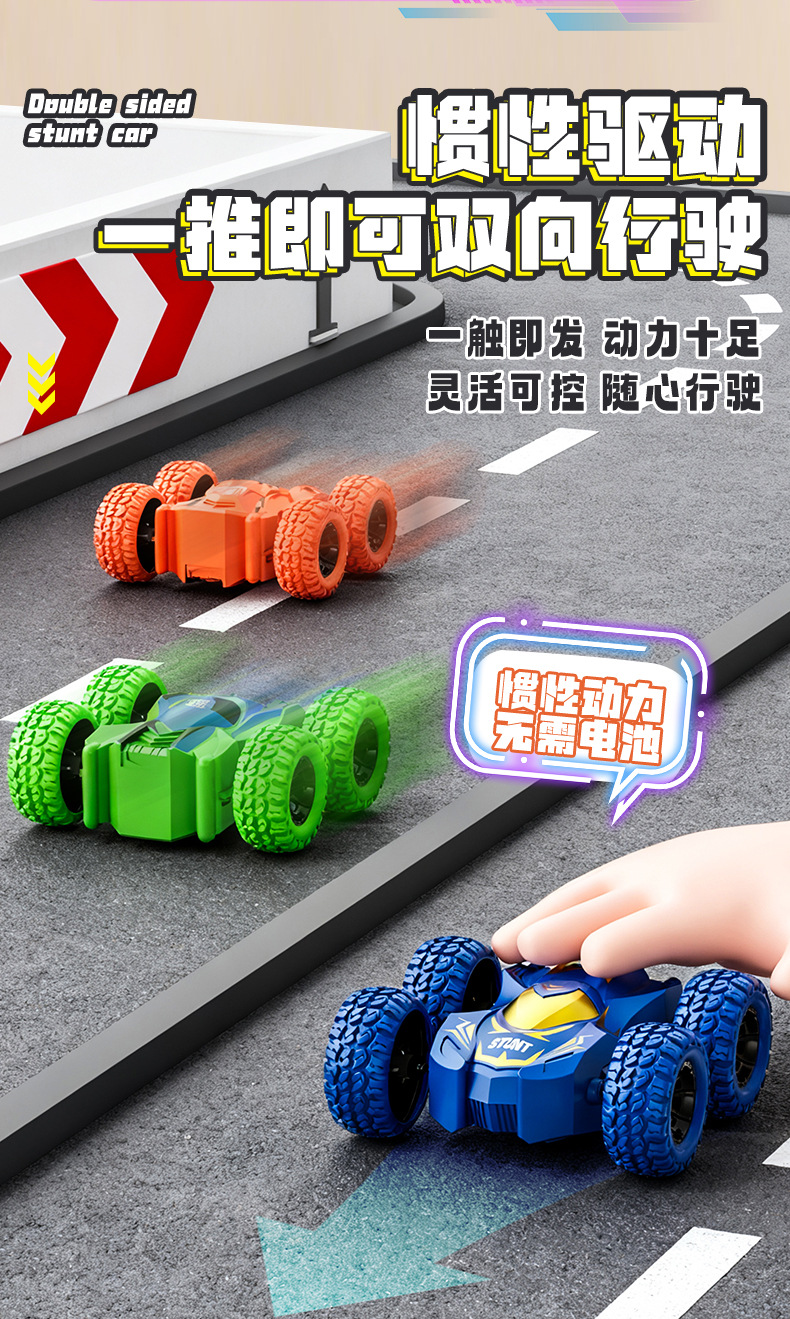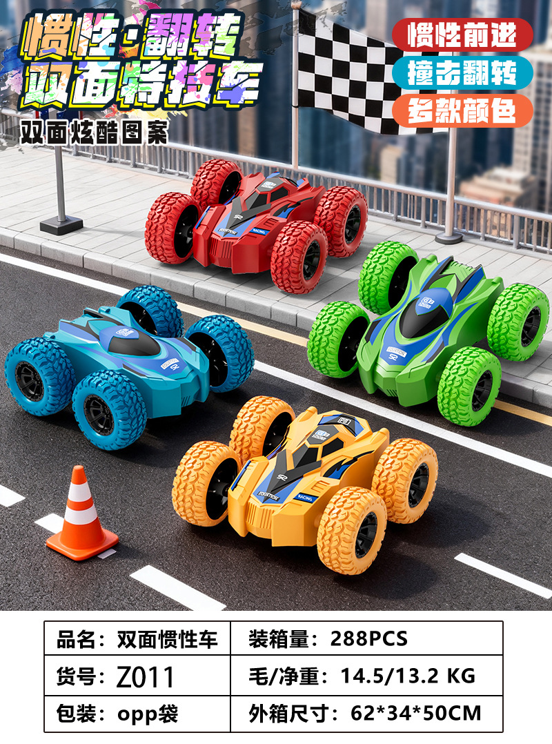新品儿童四驱双面惯性车特技翻滚模型男孩玩具车地摊玩具