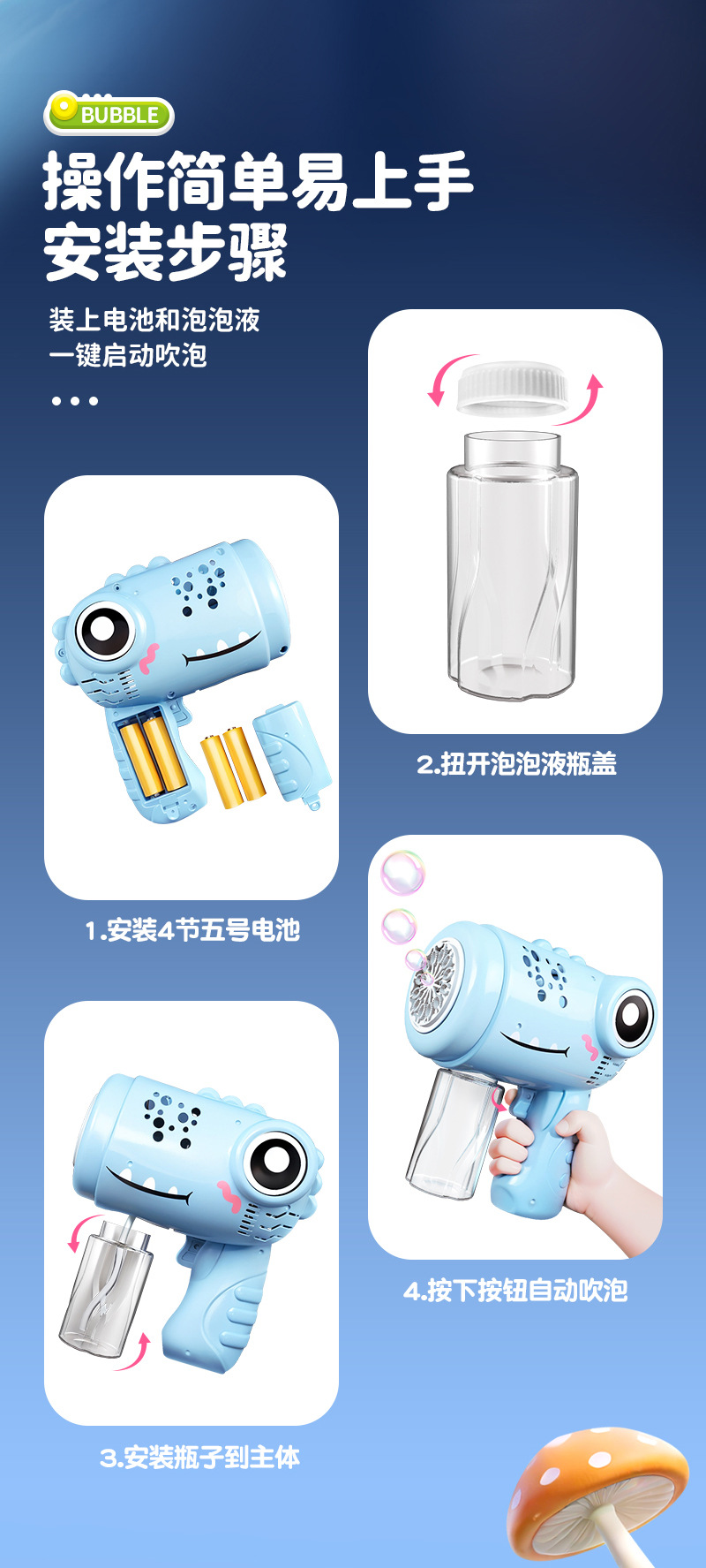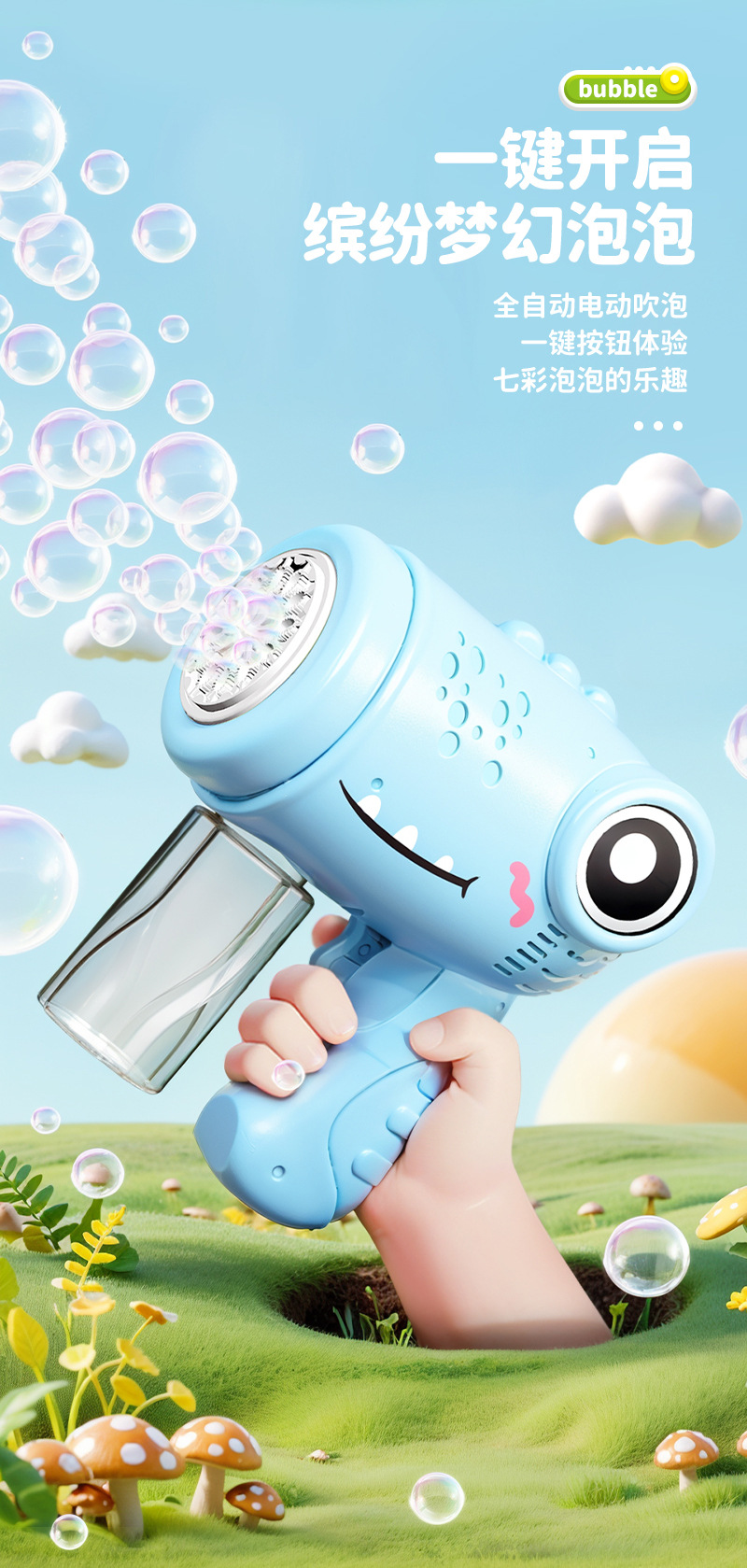 爆款泡泡机儿童全自动吹泡泡玩具电动灯光手持泡泡枪地摊玩具