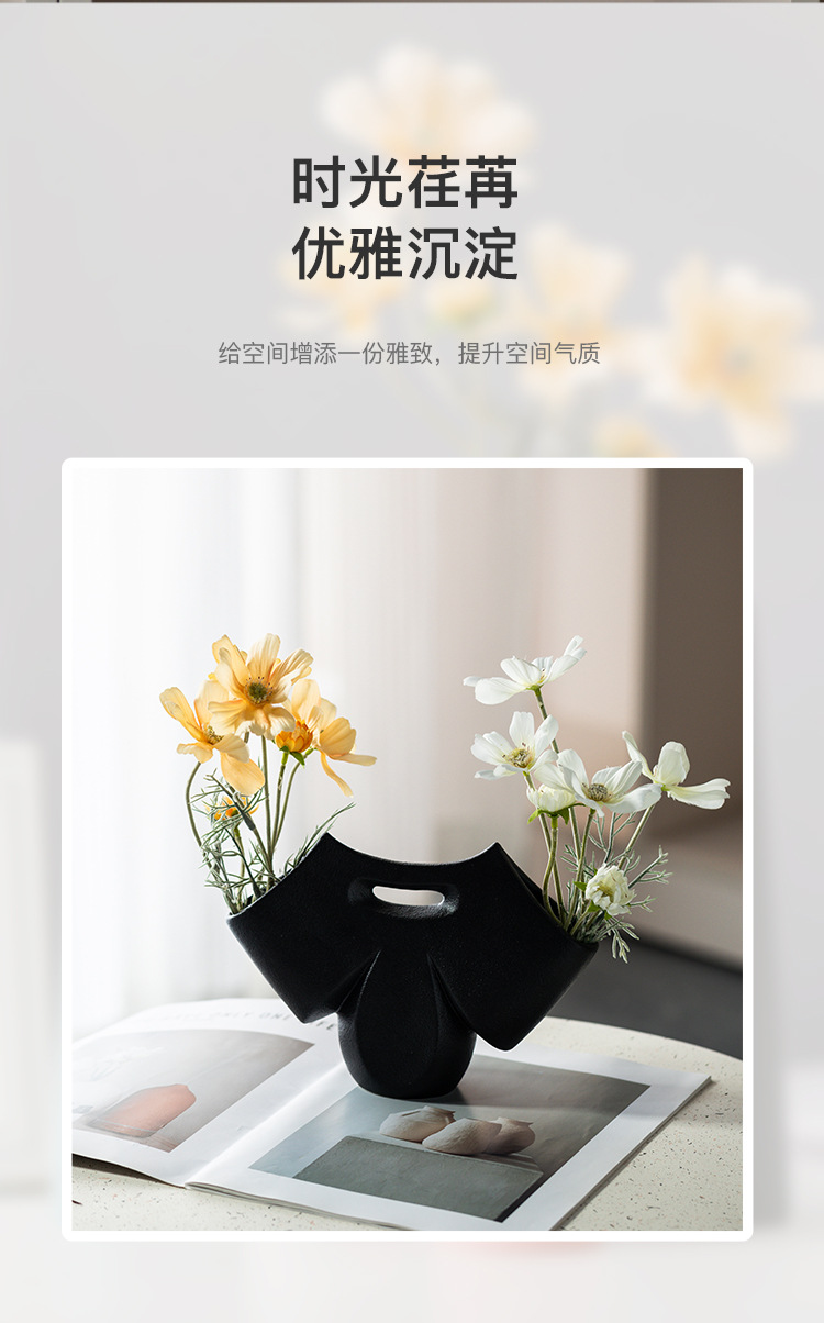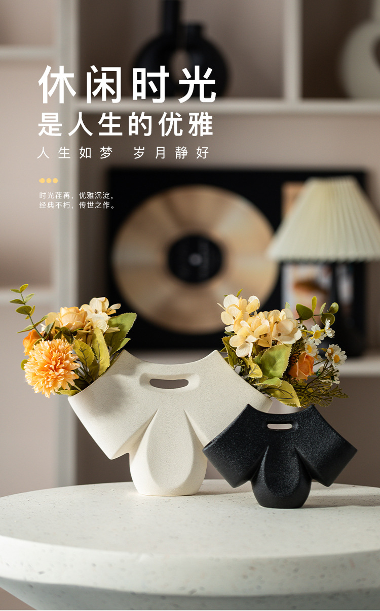 创意简约造型侘寂风陶瓷花瓶高级感摆件客厅插花家居装饰热采