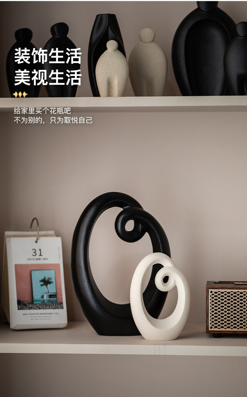 欧式极简陶瓷蛋形家居装饰摆件抽象创意组合艺术套装