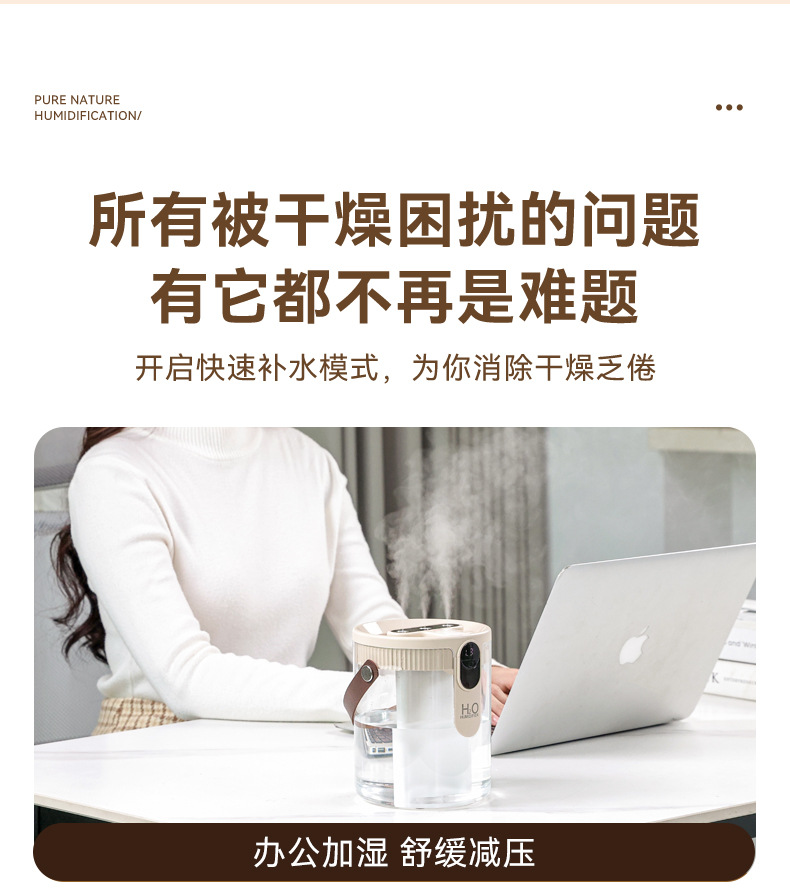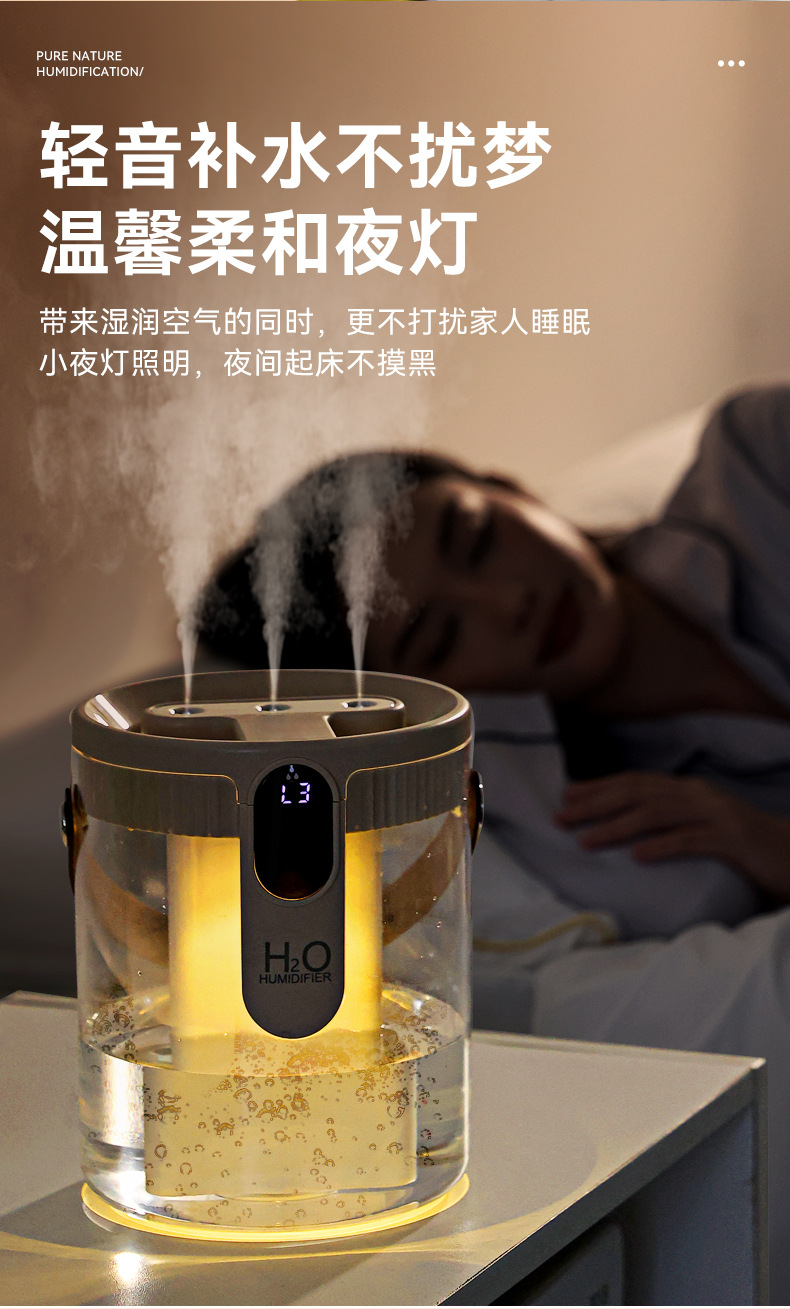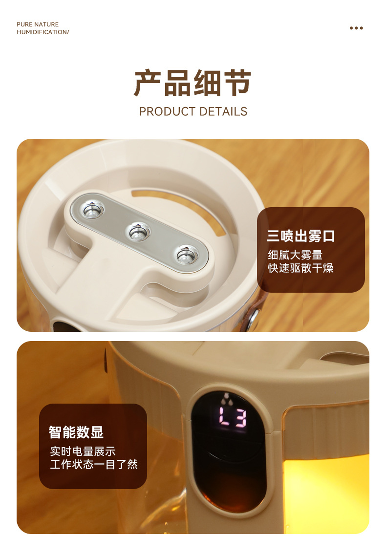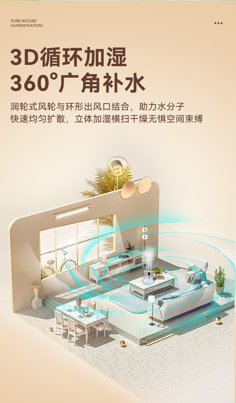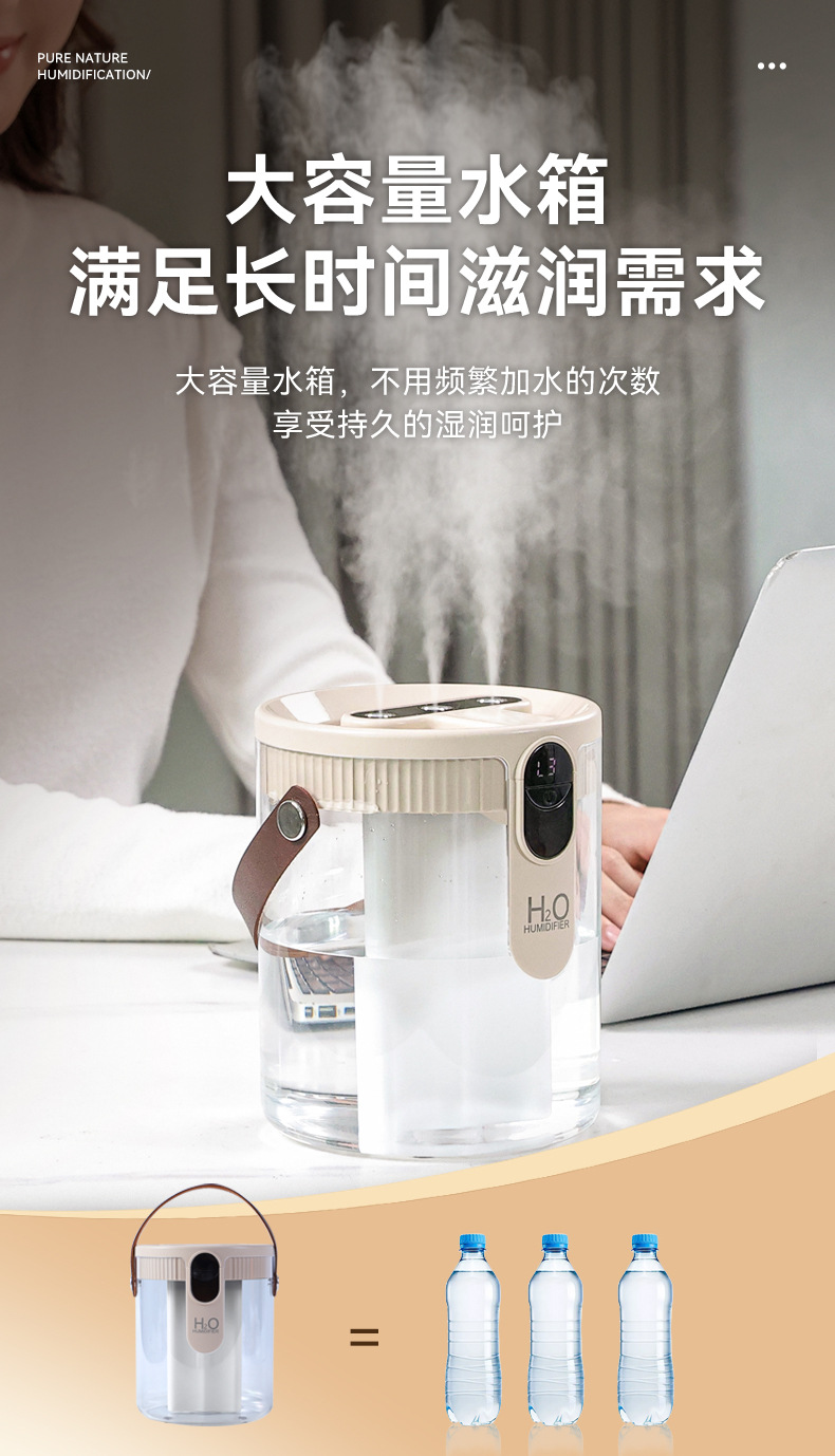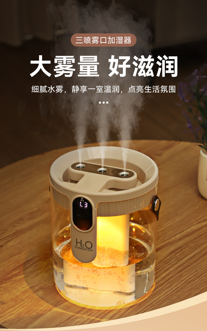 新款1.5L加湿器家用轻音卧室三喷大雾量无线便携式办公室桌面小型