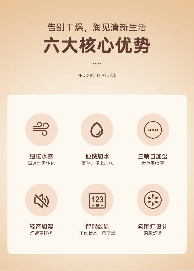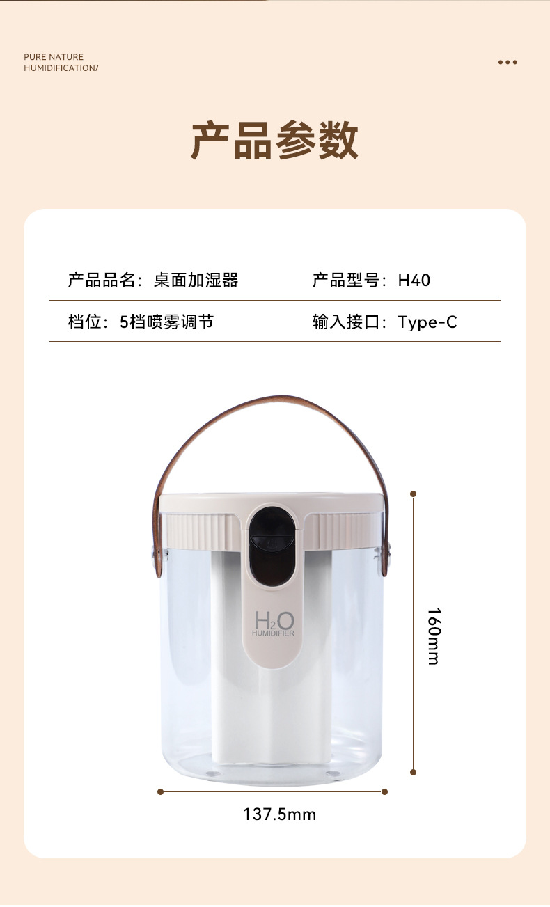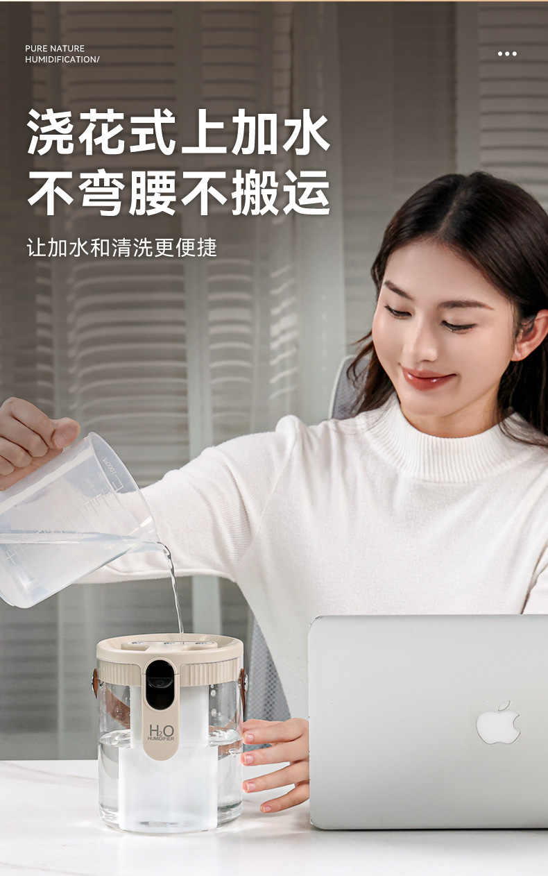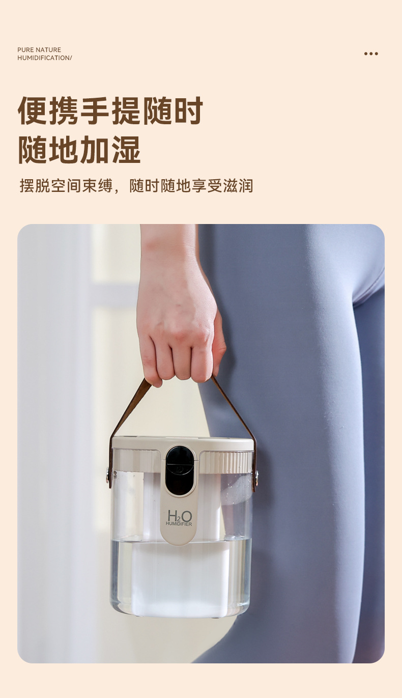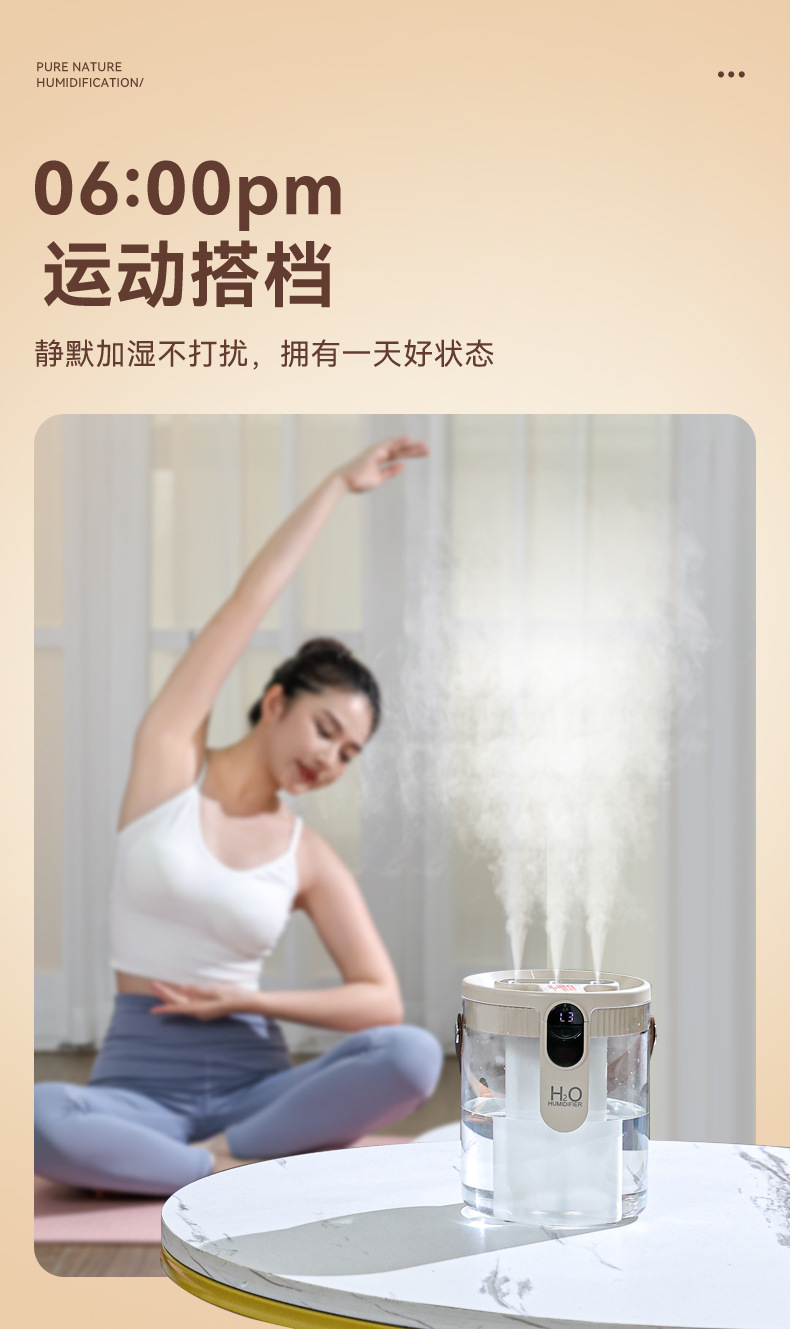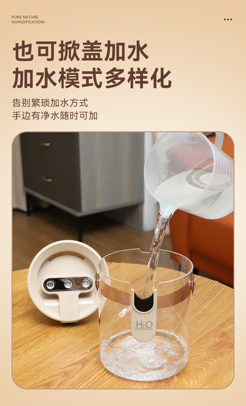 新款1.5L加湿器家用轻音卧室三喷大雾量无线便携式办公室桌面小型